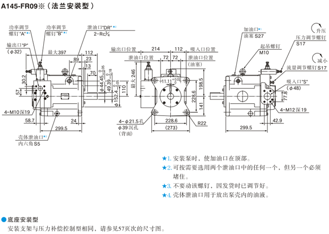 A145-FR09※(法蘭安裝型)油研柱塞泵安裝尺寸圖: