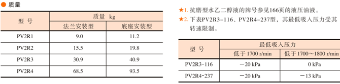 ★2.下表油研葉片泵PV2R3-116、油研葉片泵PV2R4-237型,其最低吸入壓力受其轉速限制。