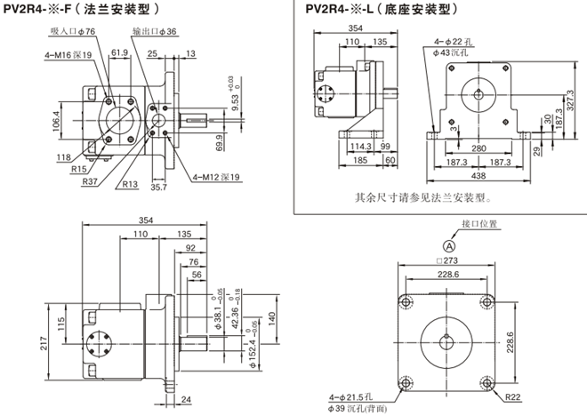 PV2R4系列油研葉片泵安裝尺寸: