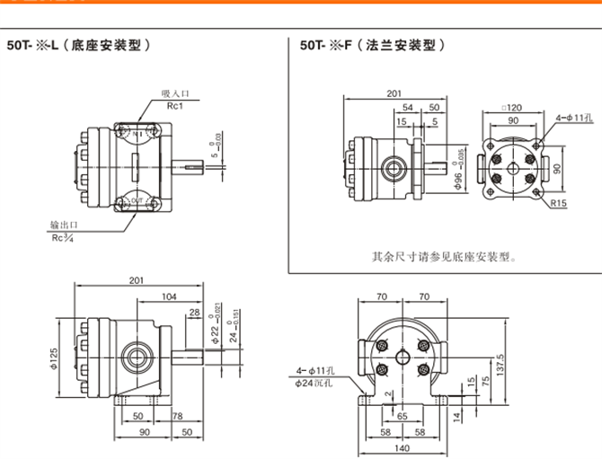 油研50T葉片泵(單泵)安裝尺寸圖:
