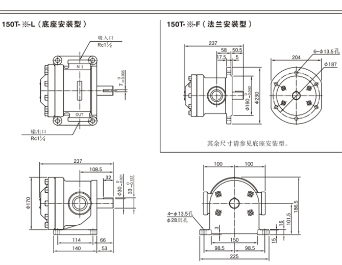 油研150T葉片泵(單泵)安裝尺寸圖: